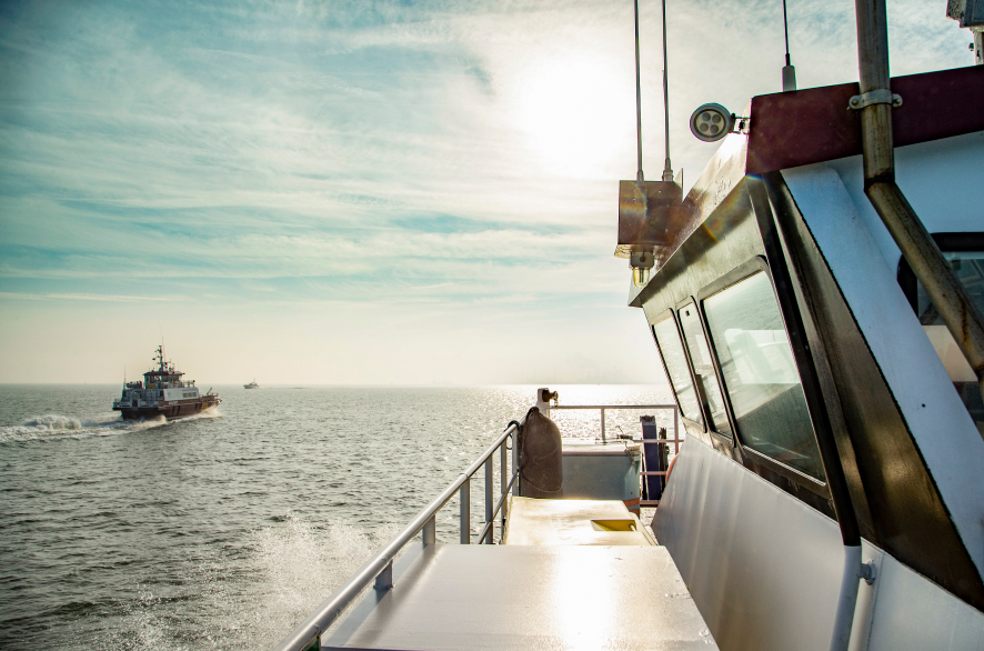 An offshore supply vessel approaches a wind turbine during a personnel transfer operation. Personal Protective Equipment is of utmost importance during such delicate operations.